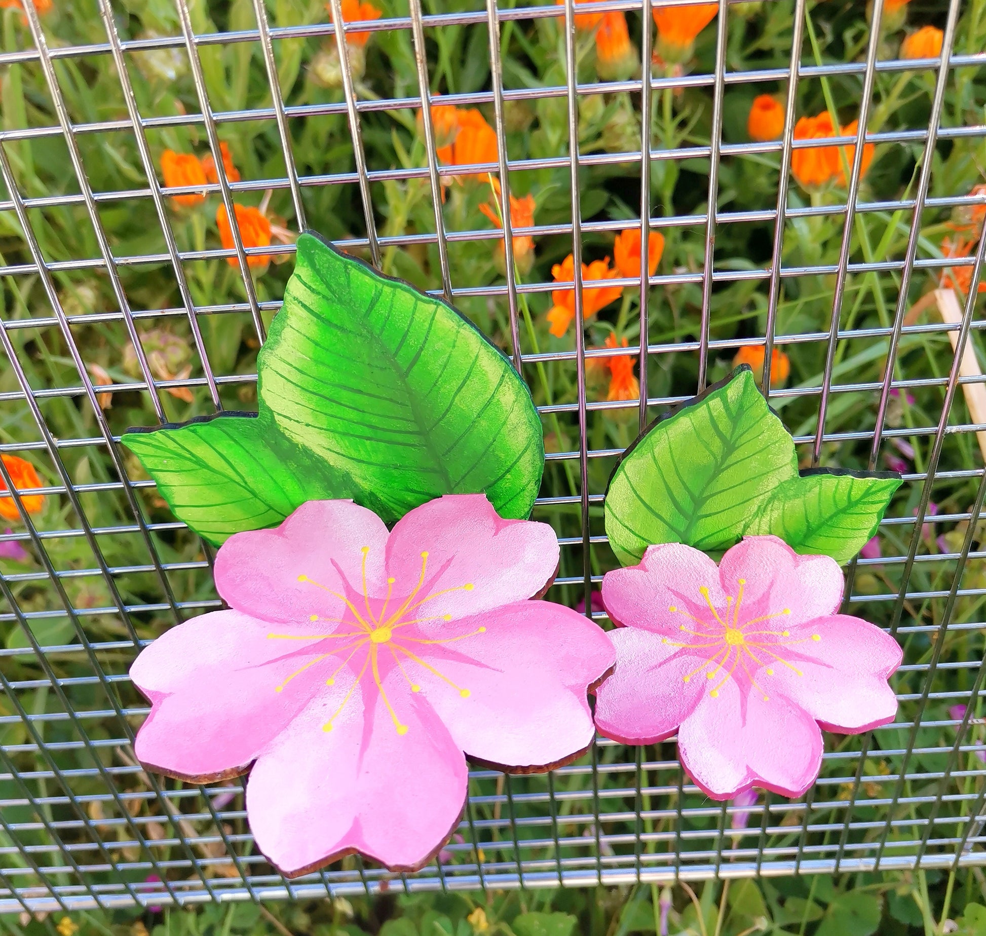 This is a set of pink cherry blossom ledges, one small and one big ledge so you can layer them like steps.