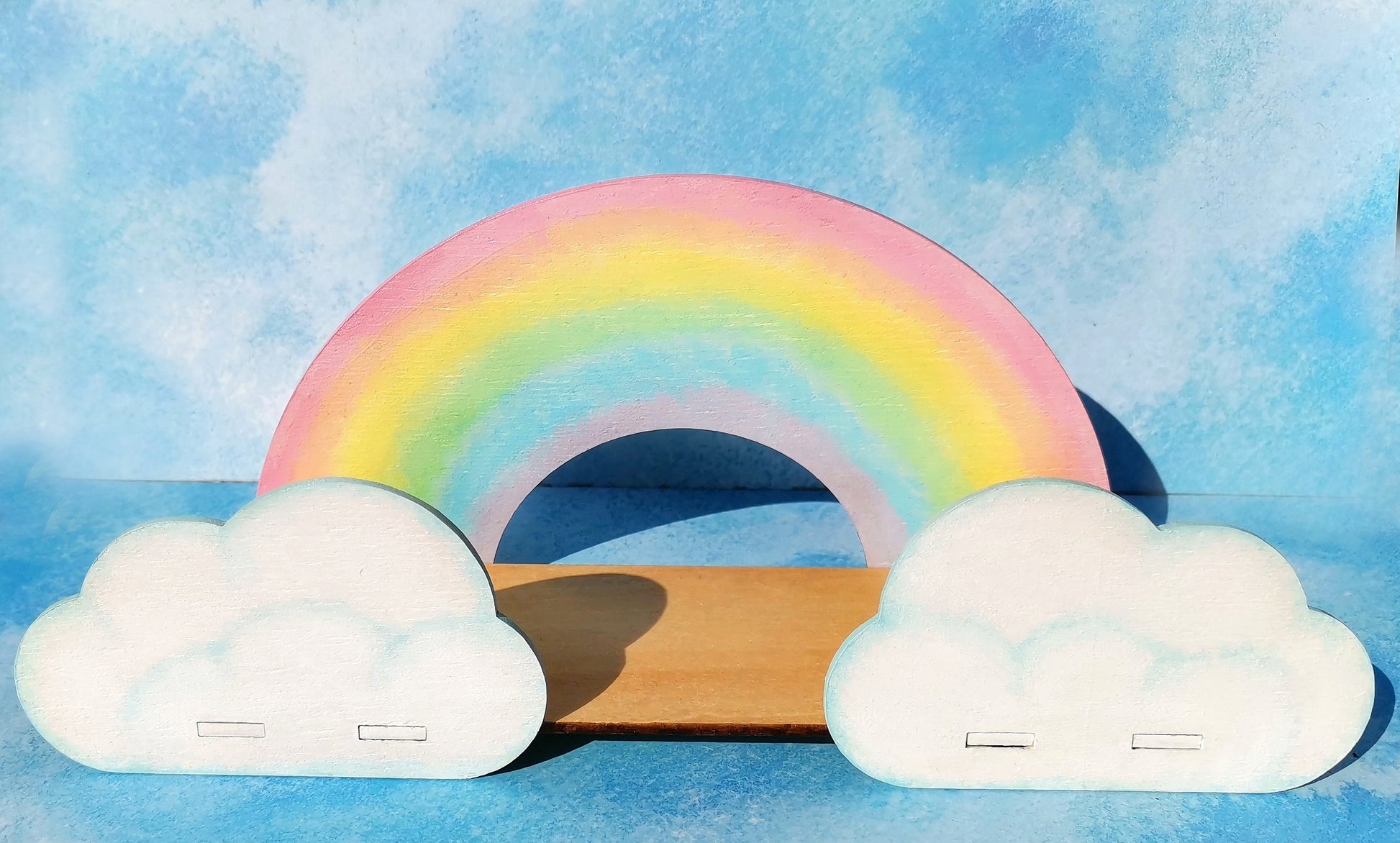 This is a longer ledge (it attaches by screws or suction cups on the rainbow, the holes are hidden by the clouds)