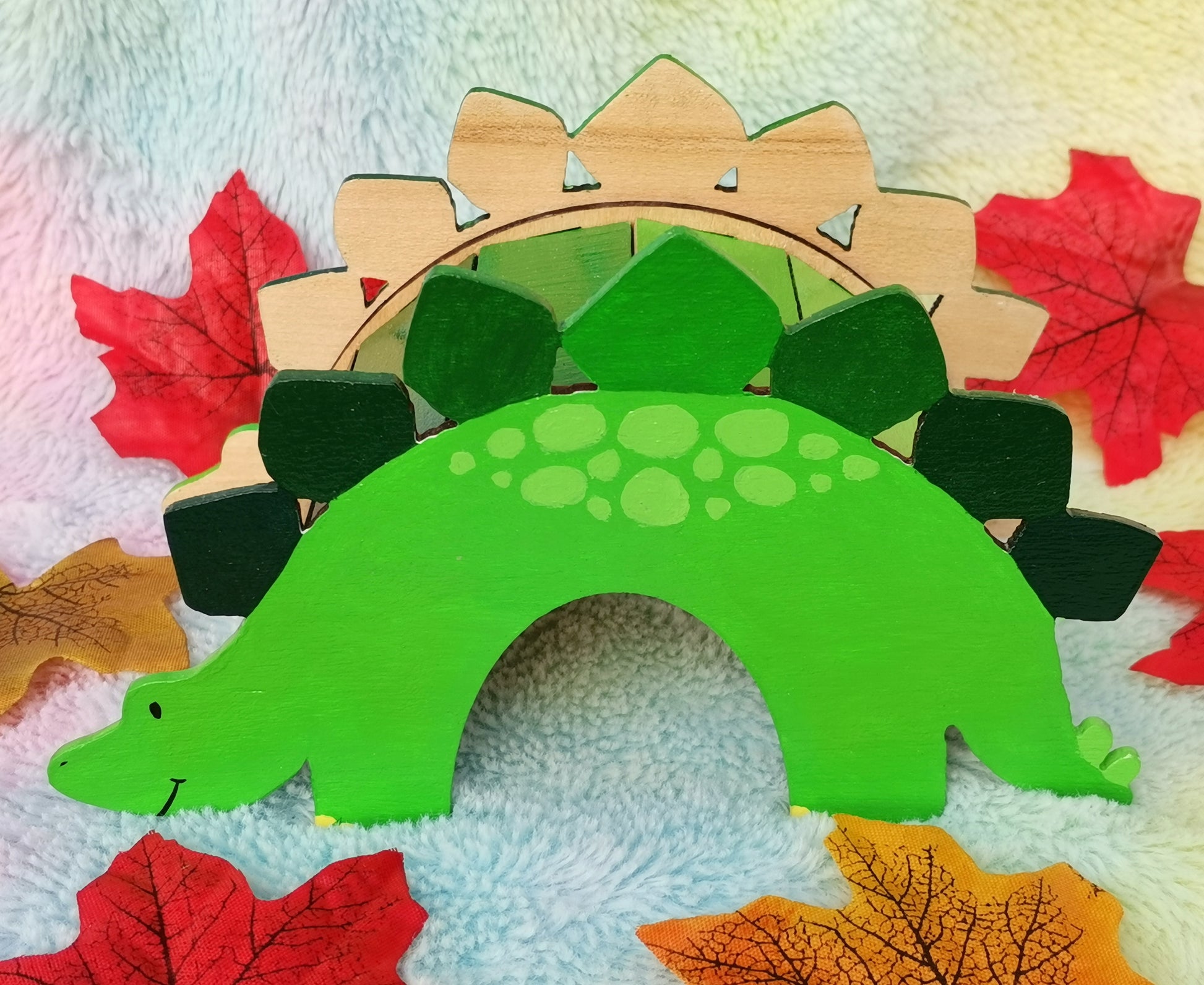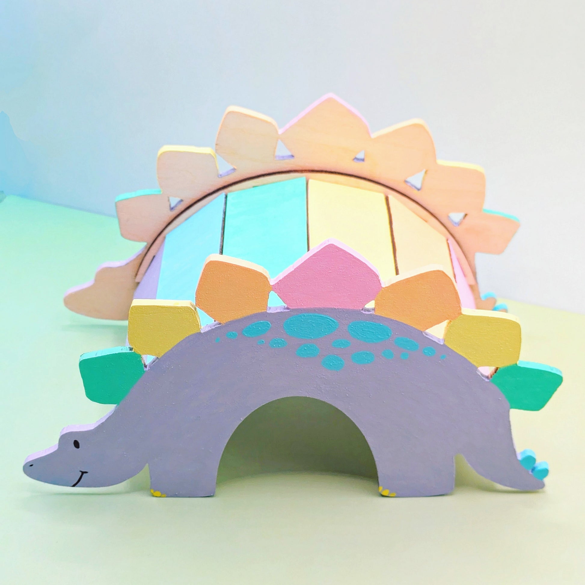 Explore prehistoric times with this friendly stegosaurus 🌈